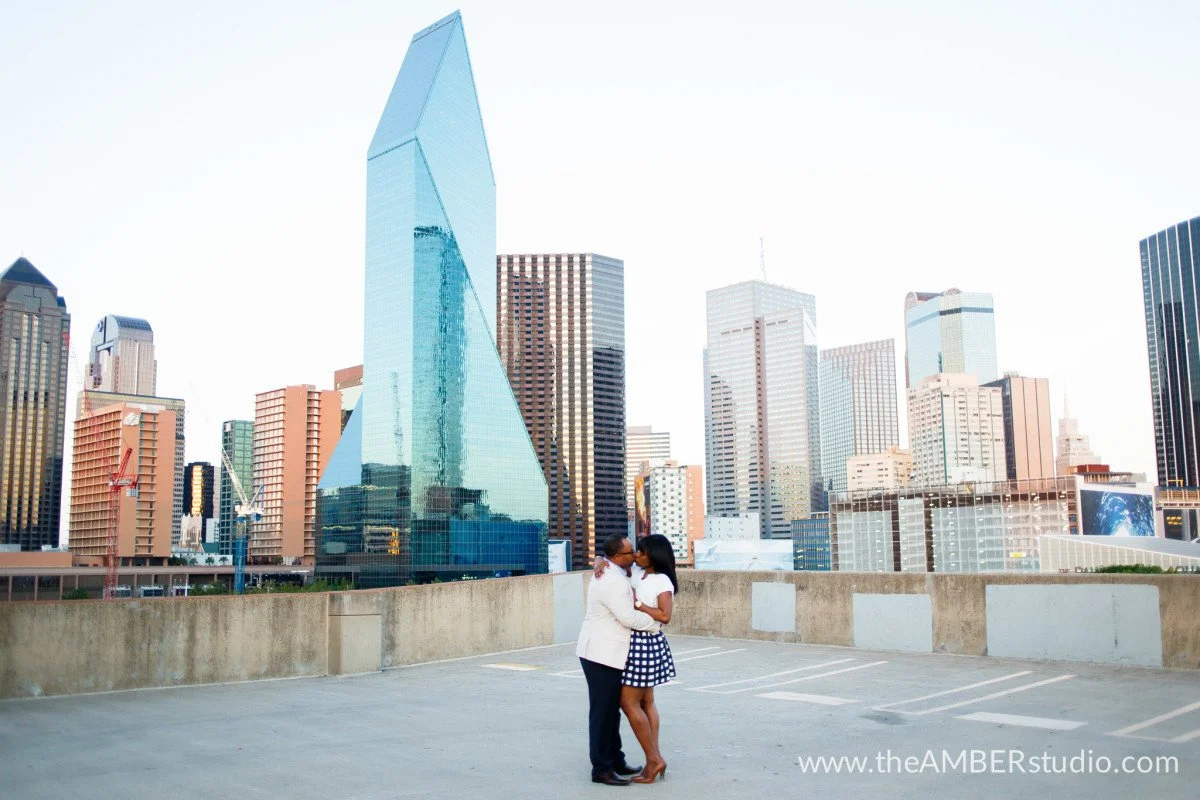 Tanikqua & Leon were High School sweethearts who found their way back to each other. They were married this fall in a beautiful ceremony at the Dallas Museum of Art. For their engagement session, they wanted to capture the magical Dallas skyline, so we headed to Downtown Dallas and the West End.